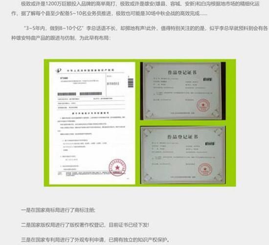 上述言论被收入“保定府酒业”公司网站一篇名为《雄安特曲:你看到的只有蹭热点,而背后的这些努力,谁知?!》文章中,该文并被不少网站转载。