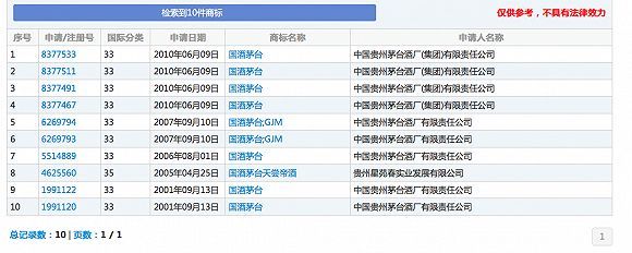 事情早在17年前就已开始,彼时商评委还是商标局(全称为国家工商行政管理总局商标局)。根据工商总局官网信息显示,早在2001年9月,茅台集团就向商标局申请注册第1991120号“国酒茅台”商标,但并未获得通过。此后在2005年、2006年、2007年、2010年,茅台集团又多次提交过“国酒茅台”的商标申请。离目标最近的一次是2010年的申请,也是这一次,茅台和31家企业结下梁子。