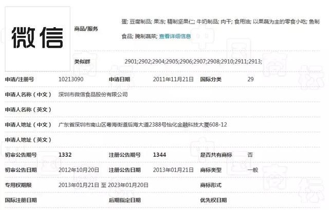 截至目前,“微信”商标并非腾讯公司独有,依旧有部分“微信”商标在他人手中,暗藏的风险昭示“微信食品”或许不是最后一次纠纷。