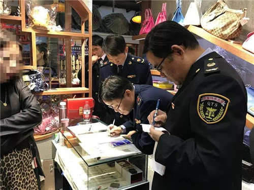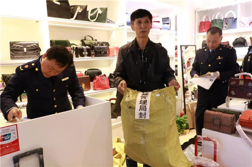 此次行动,重点检查了举报涉及的GIVENCHY(纪梵希)、LOEWE(罗意威)、LV(路易威登)、CHLOE(蔻依)、BVLGAARI(宝格丽)、CHANEL(香奈儿)、VALENTINO、CARTIER(卡地亚)、CELINE(赛琳)、LONGINES(浪琴)等品牌的商品。经检查,执法人员发现有8个商户存在涉嫌销售假冒商品的行为。经执法人员现场清点,涉嫌侵权商品“GIVENCHY(纪梵希)”商品5个; “LOEWE(罗意威)”商品8个、“LV(路易威登)”商品248个、“CHLOE(蔻依)”商品15个、“BVLGAARI(宝格丽)”商品23个、“CHANEL(香奈儿)”商品96个、“VALENTINO”商品1个、“CARTIER(卡地亚)”商品15个、“CELINE(赛琳)”商品13个、“LONGINES(浪琴)”商品3个。