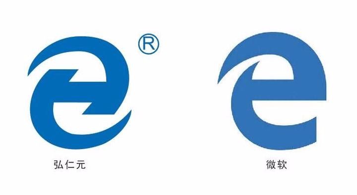 经过分析鉴别,弘仁元公司认为,微软最新浏览器使用的图标与公司的商标图案相近似,且使用在与公司注册商标核定使用的42类相同的服务类别上,会导致互联网与软件等行业内的普通消费者混淆。